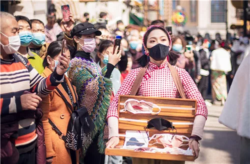 記者在電影小鎮(zhèn)看到,廣大游客佩戴口罩,自覺掃碼后入園,遇到個別忘記佩戴口罩的游客,電影小鎮(zhèn)也主動為游客提供一次性醫(yī)用口罩。同時,電影小鎮(zhèn)為游客準(zhǔn)備的定制搞怪口罩,廣受游客喜愛。游客自帶的各式各樣的花式防護(hù),也令人眼花繚亂。不少喜歡體驗歷史穿越感覺的游客換上古裝,戴上頭飾,漫步在電影大道及太極湖邊,或觀看精彩的演出節(jié)目,或在古香古色的建筑前合影留念,或帶著老人、孩子坐上黃包車周游小鎮(zhèn)。