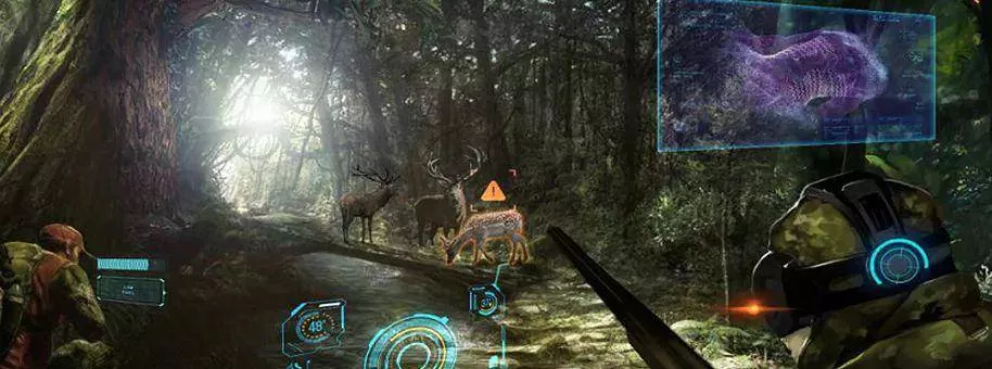 玩家穿戴頭盔,手持槍械在360度的虛擬世界中游歷玩耍,游戲分為4個階段,玩家在每個階段中需要狩獵周圍出現(xiàn)的野生動物,擊殺兇猛動物,在有限的時間內(nèi)獲得更高分?jǐn)?shù)。在游戲中,玩家將進(jìn)入翁布里亞的野生森林,與叢林中的動物斗智斗勇,感受意大利的狩獵文化。