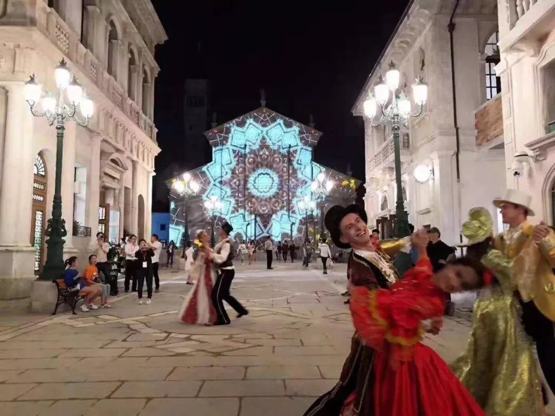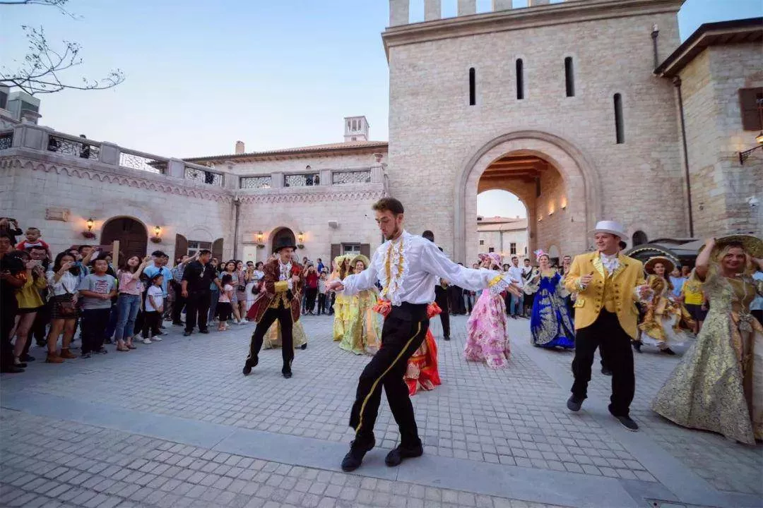 游園舞會以經(jīng)典的意大利歌舞劇為背景,塔蘭臺拉舞為表現(xiàn)形式,讓游客沉醉于一代風(fēng)情的歡快氣氛中。