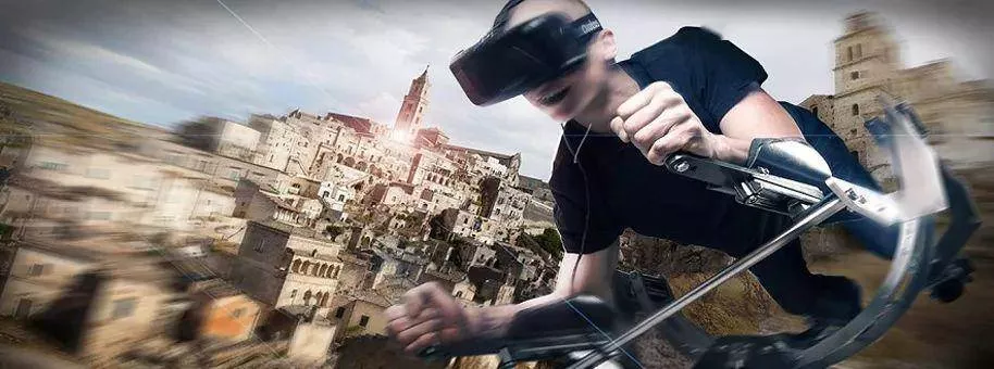 游客戴上VR頭盔,登上模擬自行車,踏上環(huán)意騎行之旅。項目選用虛擬現(xiàn)實結(jié)合實體自行車的形式,為游客營造出仿佛騎行在意大利街頭的感覺。當(dāng)游客踩動踏板時,四周的風(fēng)景如同真實的騎車時一樣朝游客身后遠(yuǎn)去,當(dāng)游客停下時,場景亦會隨之停止。