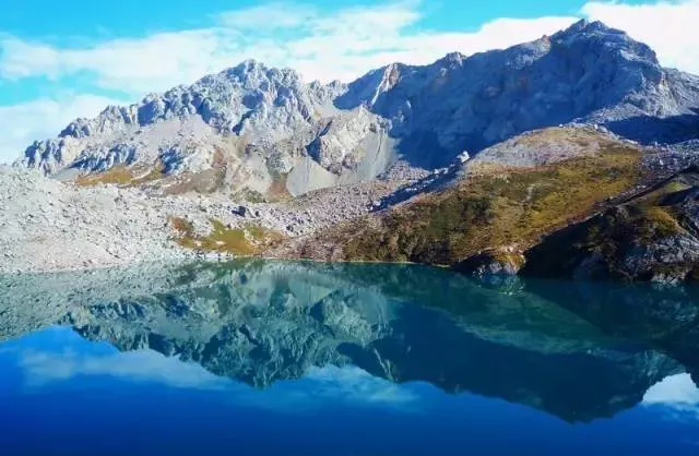 湖泊面積不足0.25平方公里,但風(fēng)景秀麗,其湖面呈卵圓形,深深嵌入山地中。湖邊山坡上百花盛開(kāi),五百繽紛。尤令人贊美的是從湖的東南側(cè)可以遙望西夏邦瑪峰,碧藍(lán)的湖水與雪山、藍(lán)天構(gòu)成一幅美不勝收的圖畫。