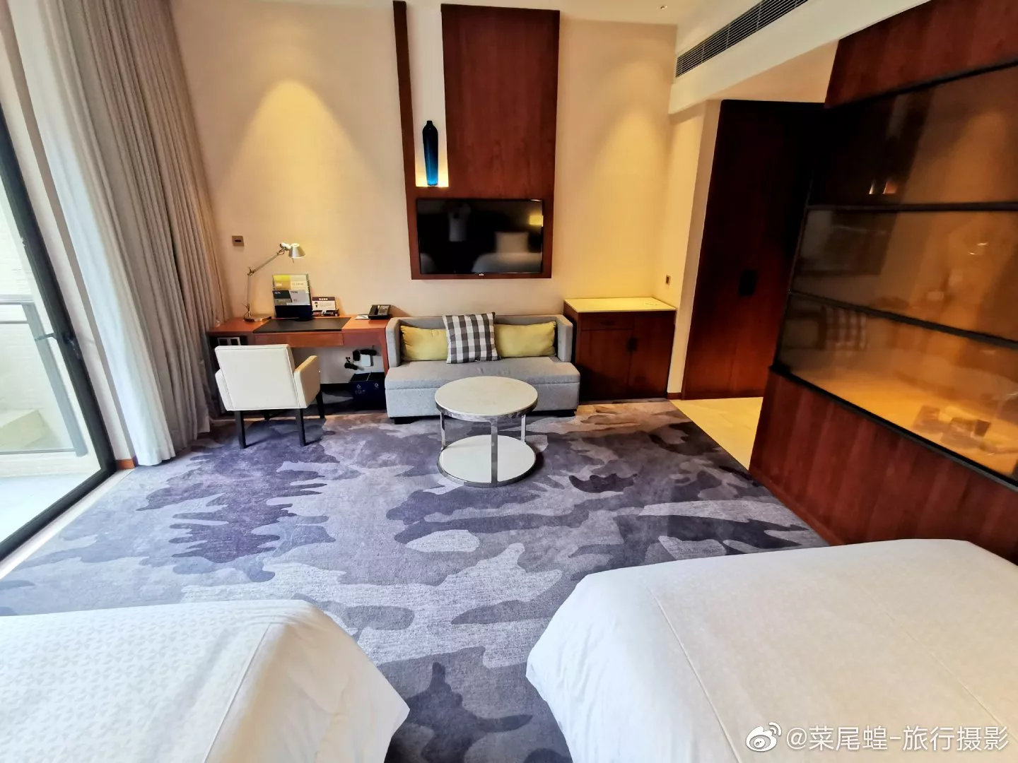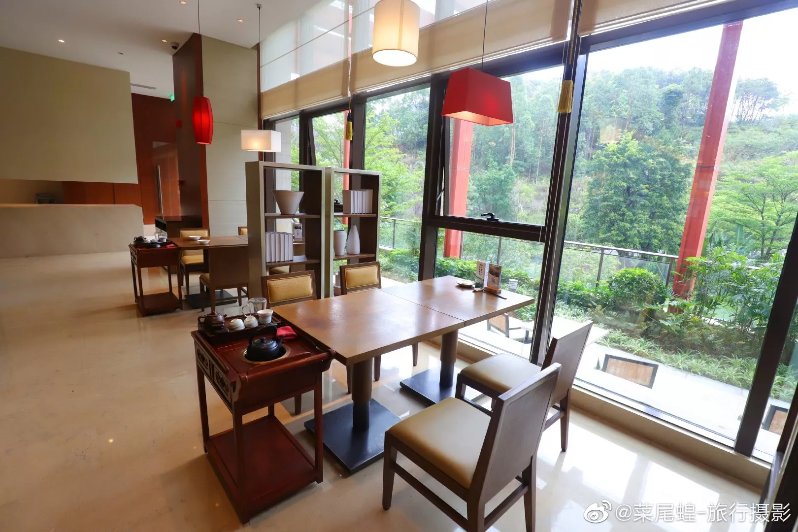 酒店的造型像是一個展翅的鴻雁,下面有一個大草坪,池塘里的睡蓮開了,房間很寬敞溫馨,陽臺對面就是大雁山,附近還有古勞水鄉(xiāng),西江大堤,茶山等風(fēng)景去?;蛘咴诰频瓿宰灾蛷d或者中餐廳喝茶,都是很寫意。作為離廣州開車一小時的度假酒店,疫情期間推出了超級劃算的房間還有秒殺的餐飲套餐,本來就很實惠的酒店更加有了吸引力,周末住客還是很多,餐飲也基本坐滿。
