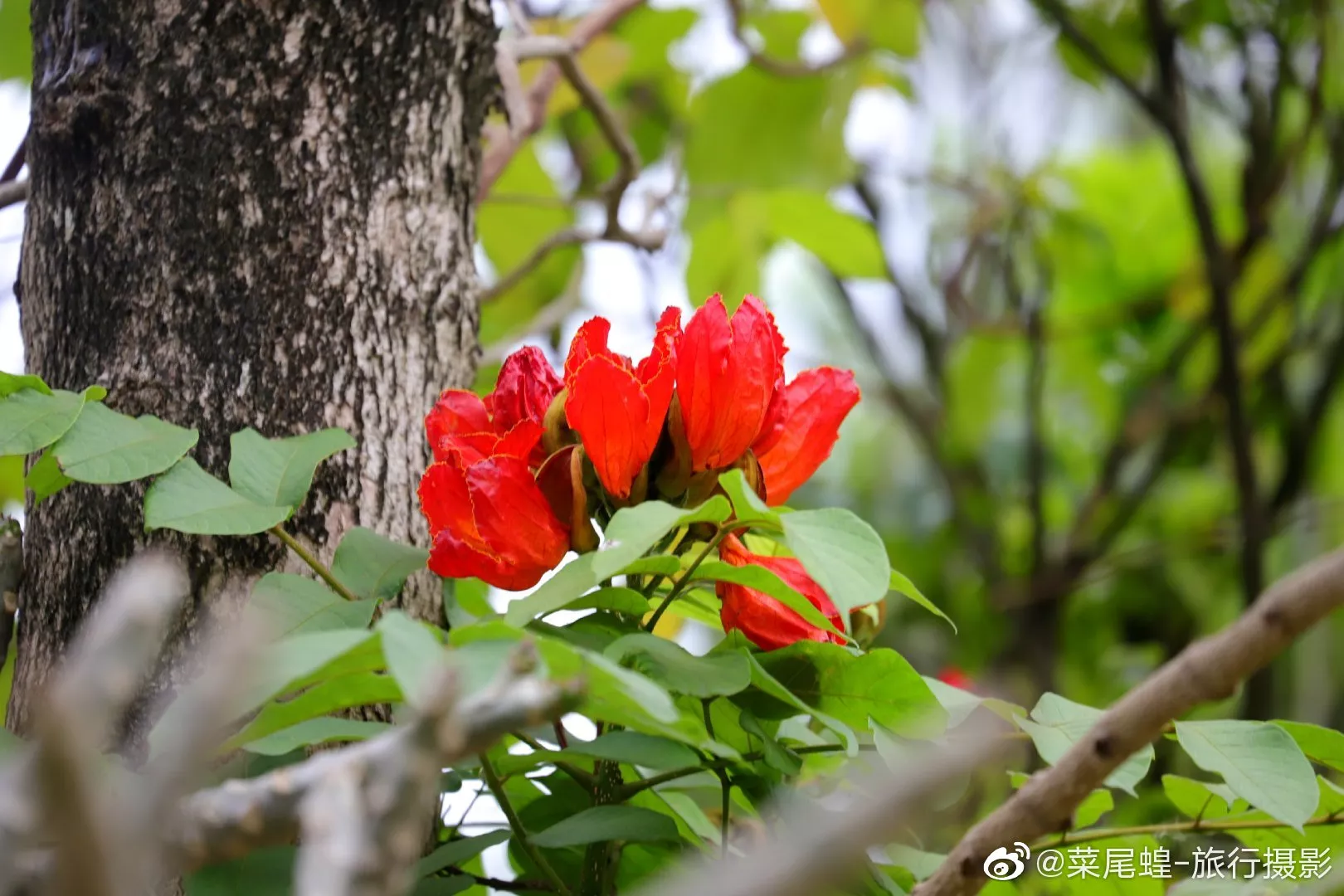 岸邊的樹上鳳凰花和禾雀花也開始綻放了,馬上五月天就來了,炎熱的季節(jié)里,南方有火紅的鳳凰花會燦爛枝頭,不能出國了,旅行何必舍近而求遠,發(fā)現(xiàn)身邊的美好。