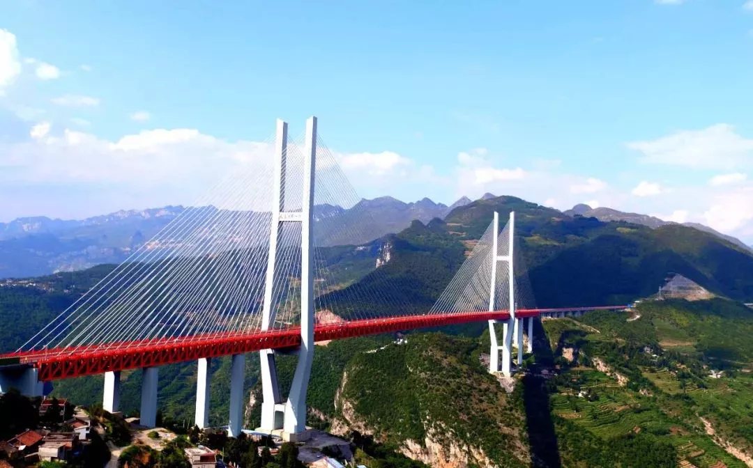 特別是關興高等級公路上的北盤江特大橋,橋長388米,大橋高486米, 是亞洲同類橋中的第一高橋。給人再現(xiàn)一種“一橋飛架南北,天塹變通途”的感覺,從大橋上俯瞰深隧幽長的大峽谷,給人一種“天溝地縫”的感覺。近千米高、幾千米長的斧削絕壁猶如波瀾壯闊、氣勢磅礴的巨幅長廊壁畫。特別是在霧氣朦朧、煙云繚繞的時候,給人更是一種仙境般的感覺。