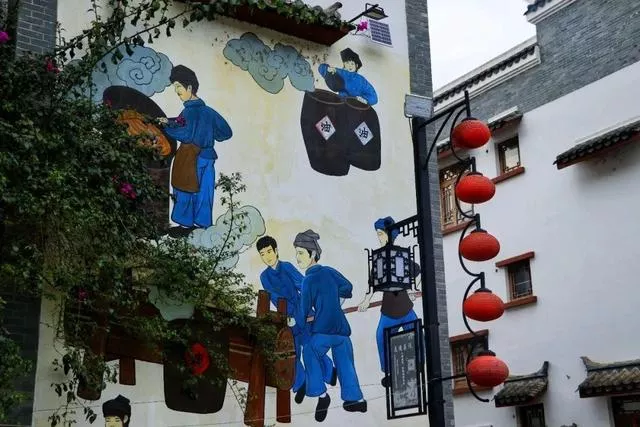 少數(shù)民族文化壁畫:荔波古鎮(zhèn)內(nèi)許多建筑的墻上的都刻畫著荔波當?shù)厣贁?shù)名族的文化故事。例如“布依十三坊”,“布依十三坊”是布依人塵封已久的文化記憶,包括刺繡坊、豆腐坊、剪紙坊、木雕坊、釀酒坊、書畫坊、水磨坊、油榨坊、織布坊、制茶坊、制陶坊、制衣坊、竹編坊。