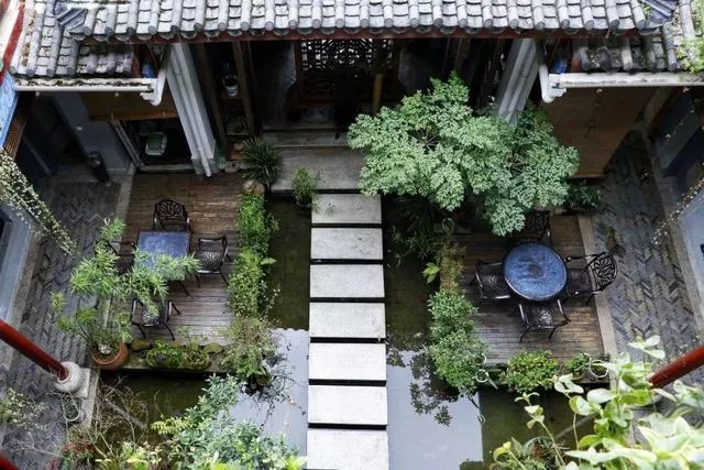 步入其中,更能看到民宿主“自然為本”的理念。客棧是四合院布局,中央有一個小小的水池,四周種滿了竹科植物,池里有錦鯉悠然戲水。