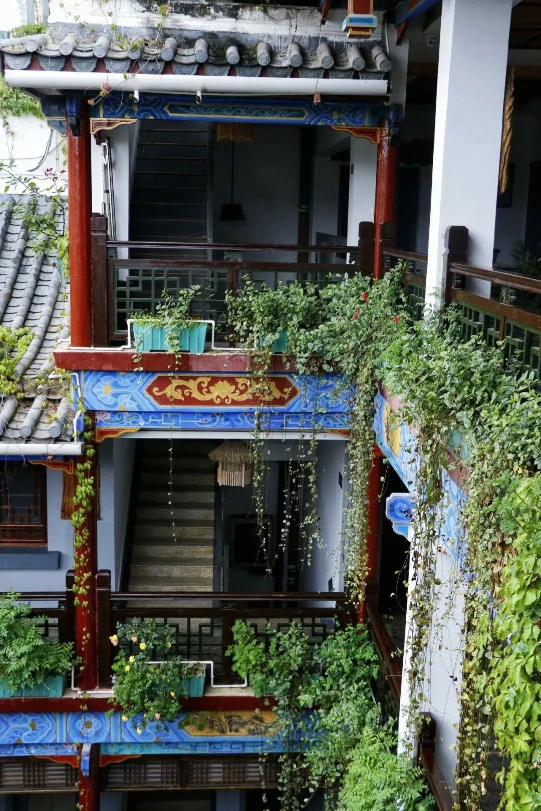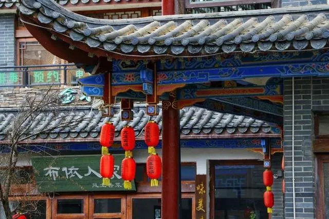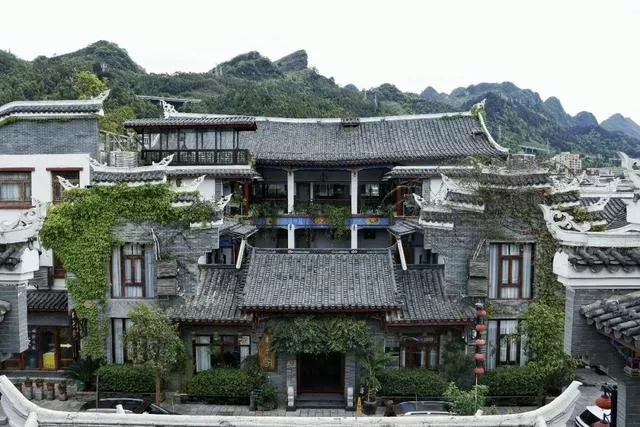 客棧位于古鎮(zhèn)的布依水鄉(xiāng),有著鮮明的布依風格??蜅M庥^是仿古建筑風格,外墻上爬滿了綠植,郁郁蔥蔥。