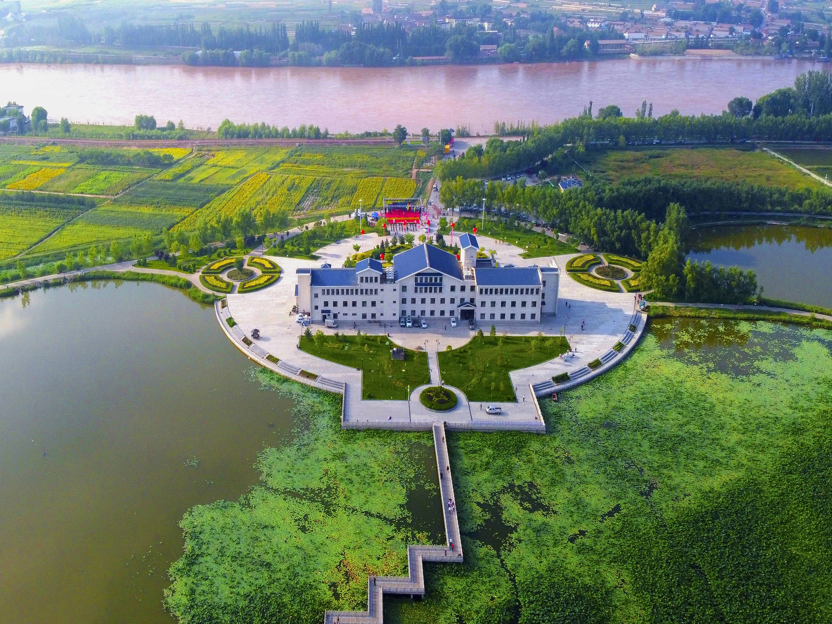 離開牛毛灣景區(qū),我們再次駛?cè)胙攸S觀光路,沿途經(jīng)過黃河濕地風(fēng)景區(qū)北大門、中國棗文化博覽園、大荔驛站、福源碼頭、漁湖境天等節(jié)點景觀,因時間有限拍完照片不敢停留,徑直趕往福佑古寨。