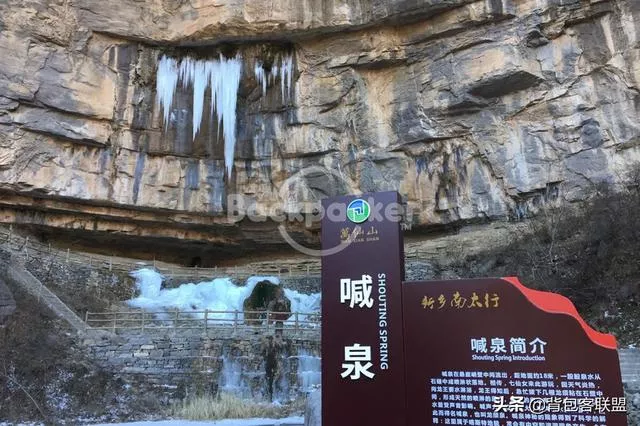 郭亮村的“喊泉”是獨一無二的。兩個泉眼高懸于百米之上,似兩個龍頭在噴云吐霧,瀑布從絕壁頂上一空心圓洞中垂直落下,遠(yuǎn)看恰似“龍須”,又稱“龍涎”瀑布。游人站在其下,一聲高喊,泉水流量便有所增加,似乎在歡迎游人的到來,其情其景,不能不令人叫絕。