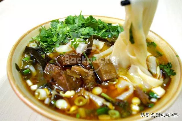 是當(dāng)?shù)氐膫鹘y(tǒng)小吃,在當(dāng)?shù)亓鱾饕延星曛?。主料是面粉和食用堿。饸饹條口感強筋道,耐嚼,配料也極其簡單。一般是一鍋高湯成年累月的熬在火上,每天不斷的往里續(xù)水放肉丁加佐料,湯色亮黃,吃面的時候,加上青蒜苗段,連湯帶肉的舀一勺子澆上去,蒜苗的清香和著肉香撲鼻而來,吃一口,面條筋道湯厚味重,別有一番風(fēng)味。