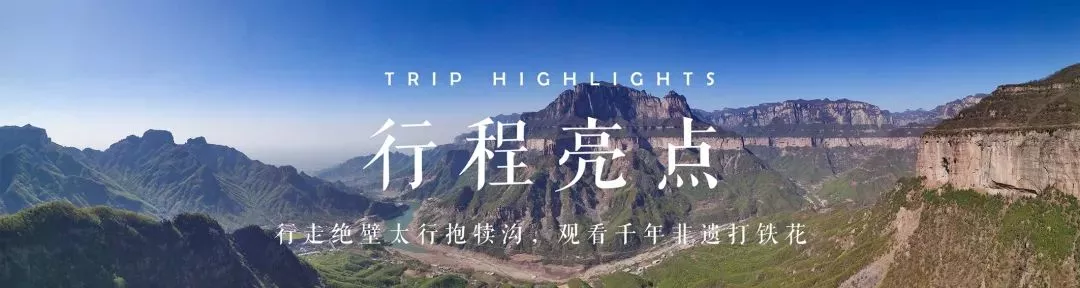 太行山山勢險峻,300米的懸崖絕壁比比皆是,行走時,我們將獨家啟用【安全鎖裝置】,您的安全比一切都重要!我們希望您在安全的前提,盡賞太行絕美原始的美景!