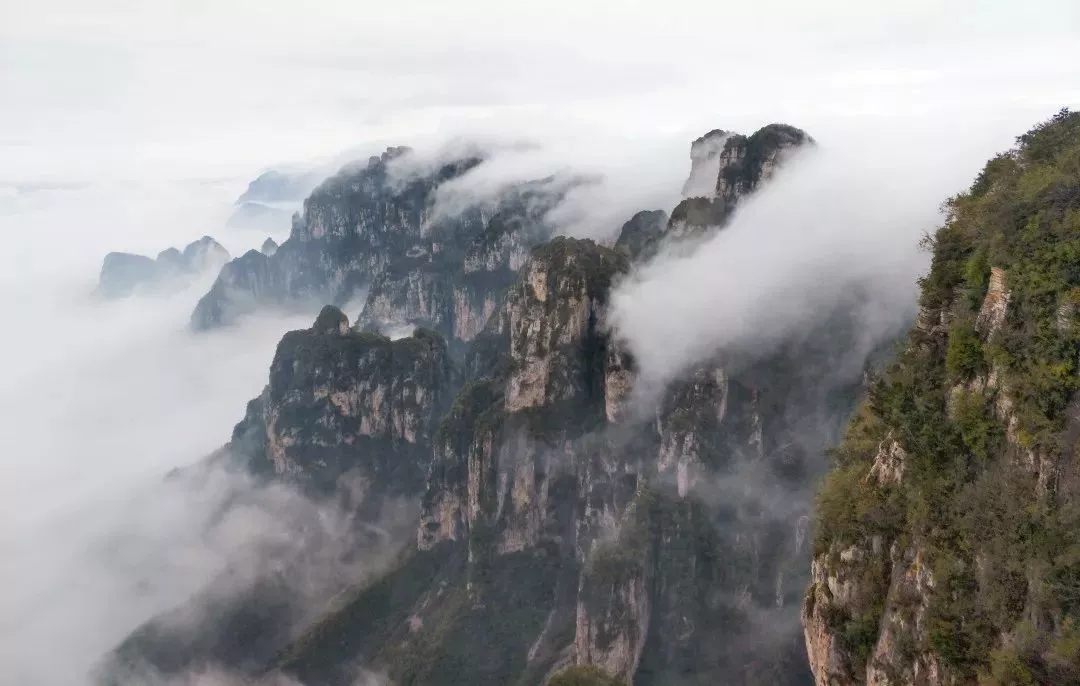 王莽嶺是豫晉兩省的分界點,懸崖之上屬山西陵川縣的王莽嶺景區(qū),懸崖之下是萬仙山,兩個景區(qū)山連山,峰連峰,資源共享,優(yōu)勢互補。相傳西漢王莽追趕劉秀到此安營扎寨,故名。又因其險峰幻疊,云海浩翰,瞬息萬變被稱之為“云山幻影”。