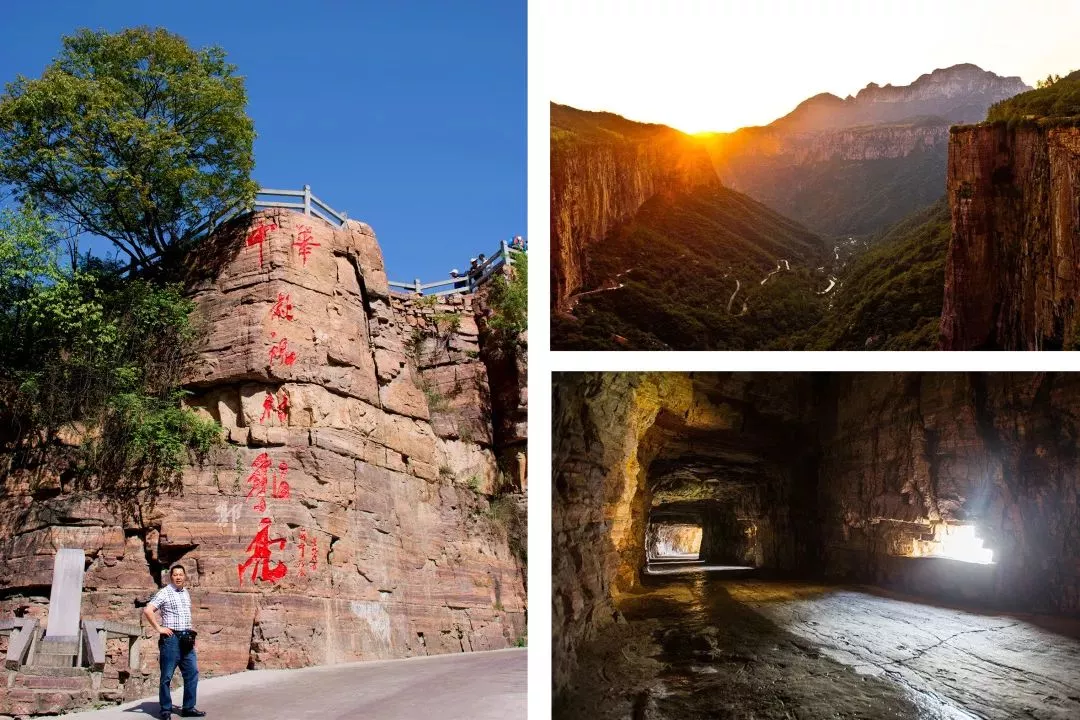 早餐后,出發(fā)前往【萬仙山景區(qū)】。我們將徒步行走這世界第九大奇跡——【郭亮掛壁公路】,親身感受十三位壯士鍥而不舍的精神。站在觀景臺上,200余米高的赤紅色太行絕壁在你的面前,在你的心里橫沖直撞。掛壁公路橫掛其上,如夢如幻。