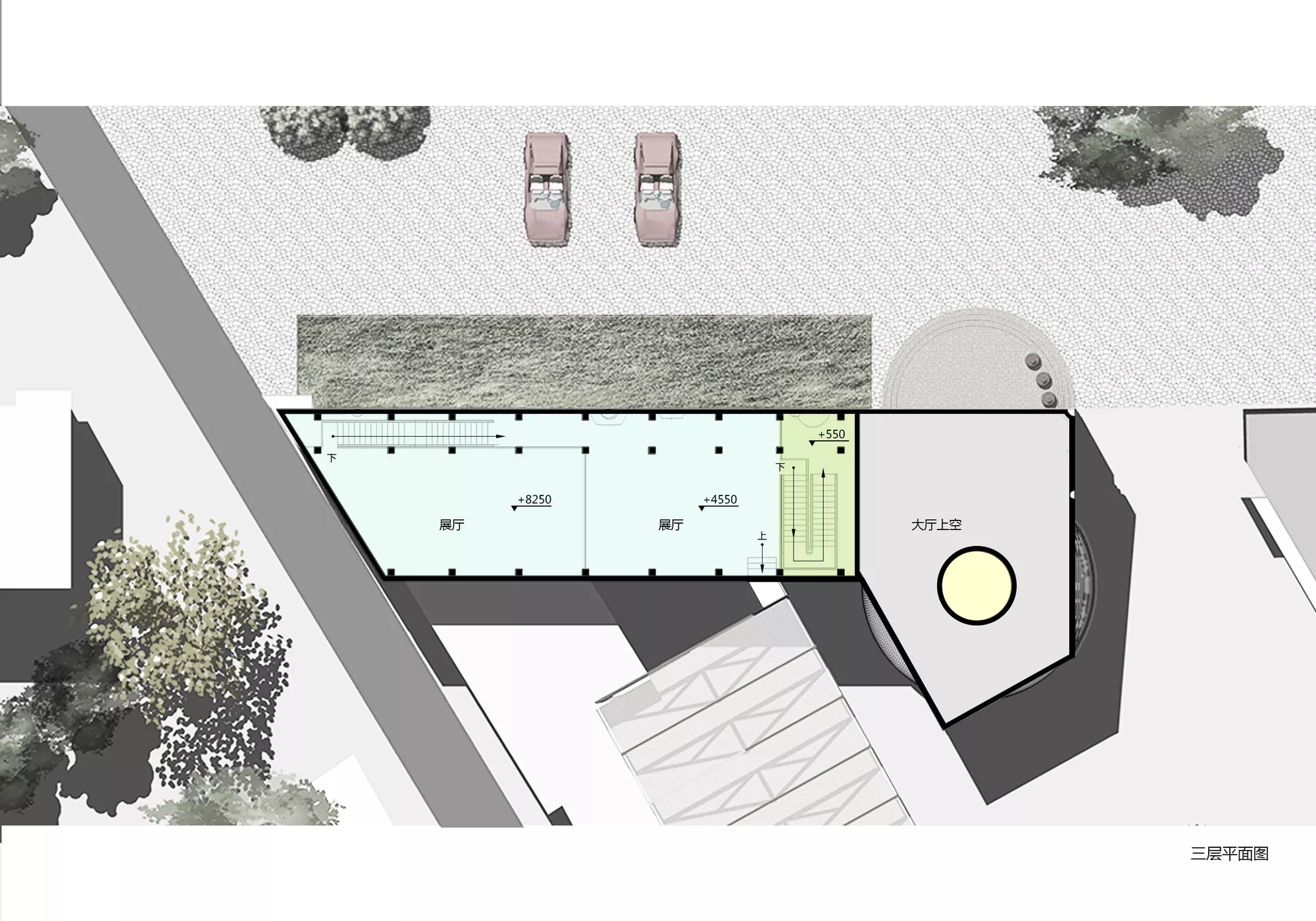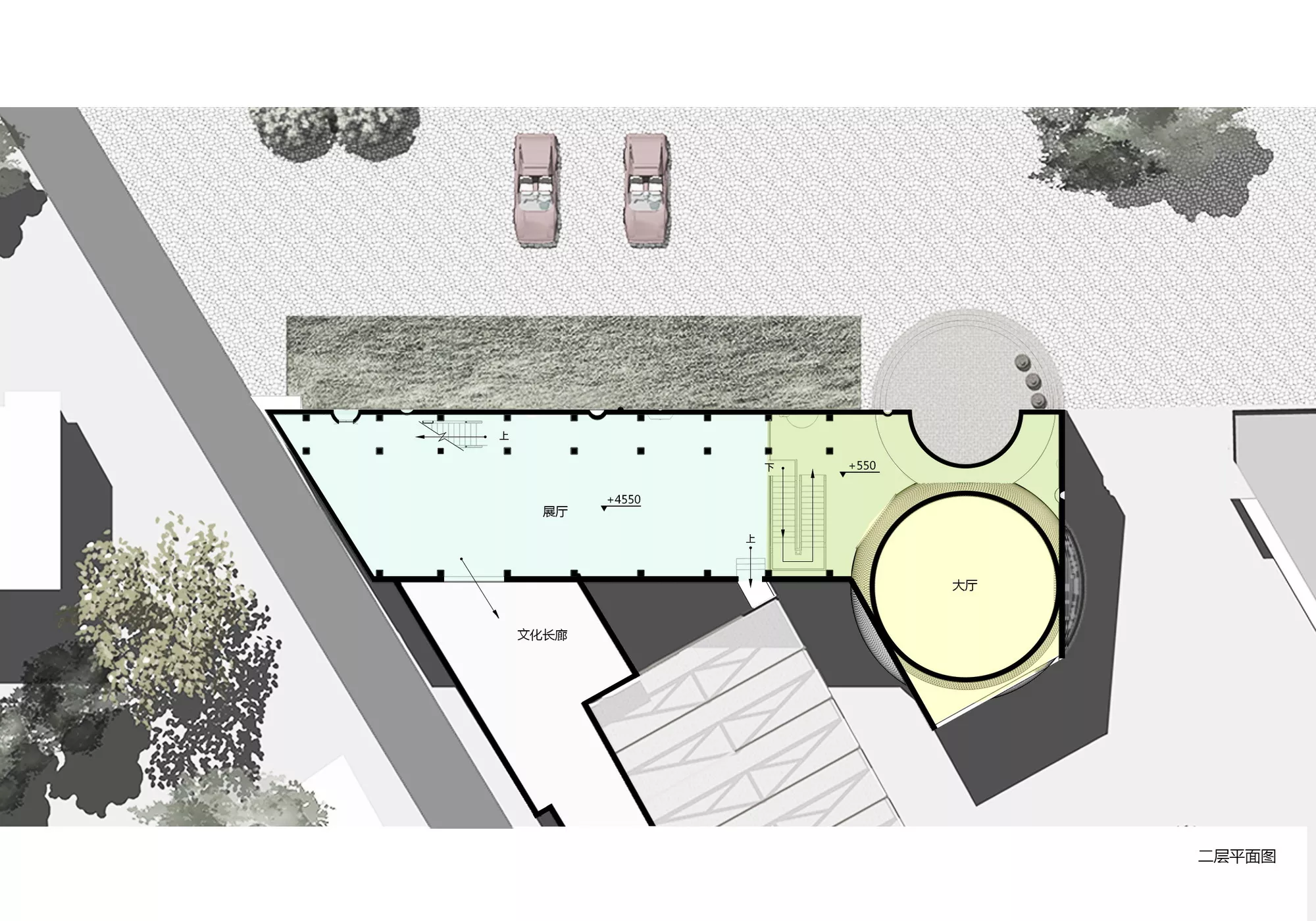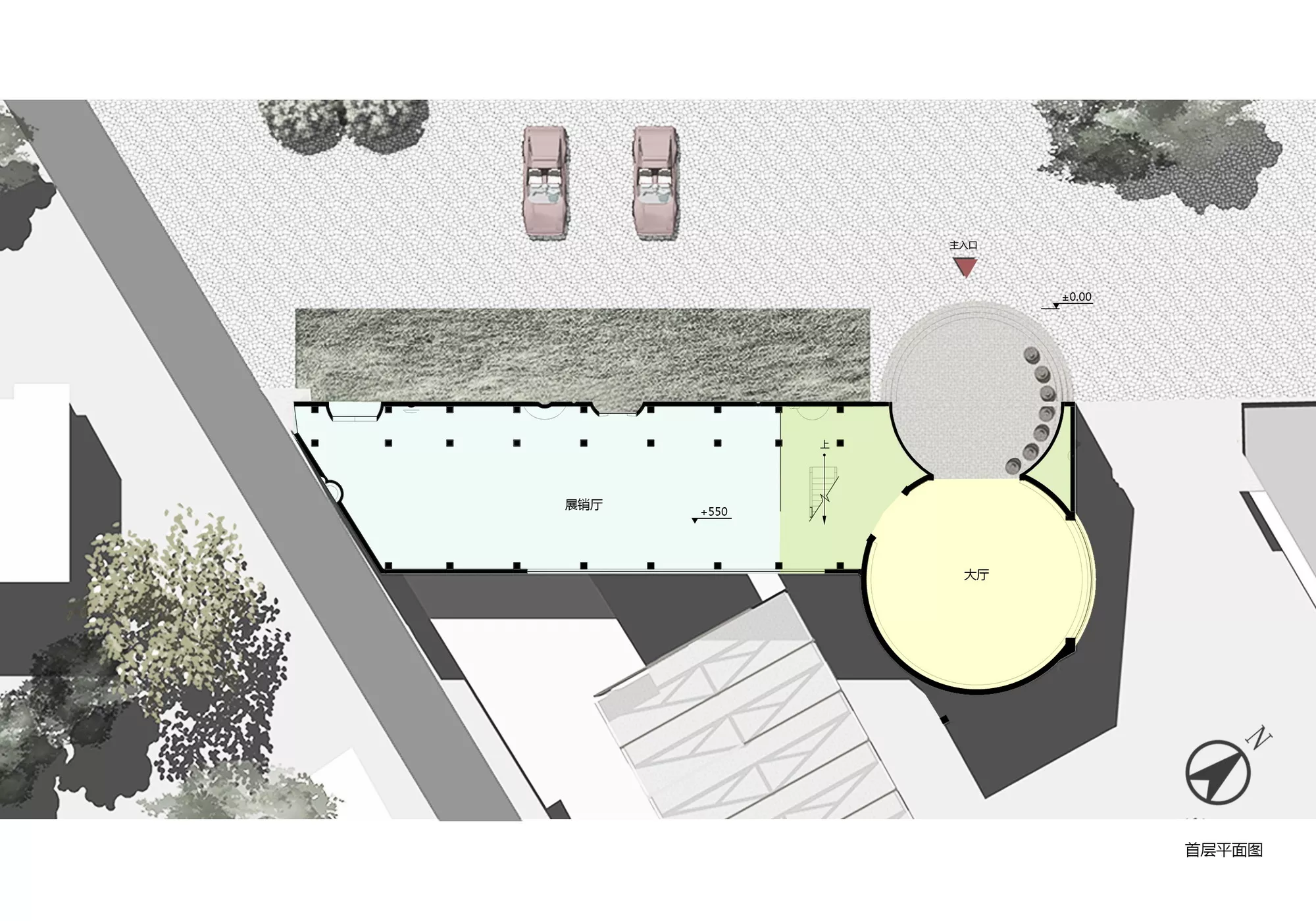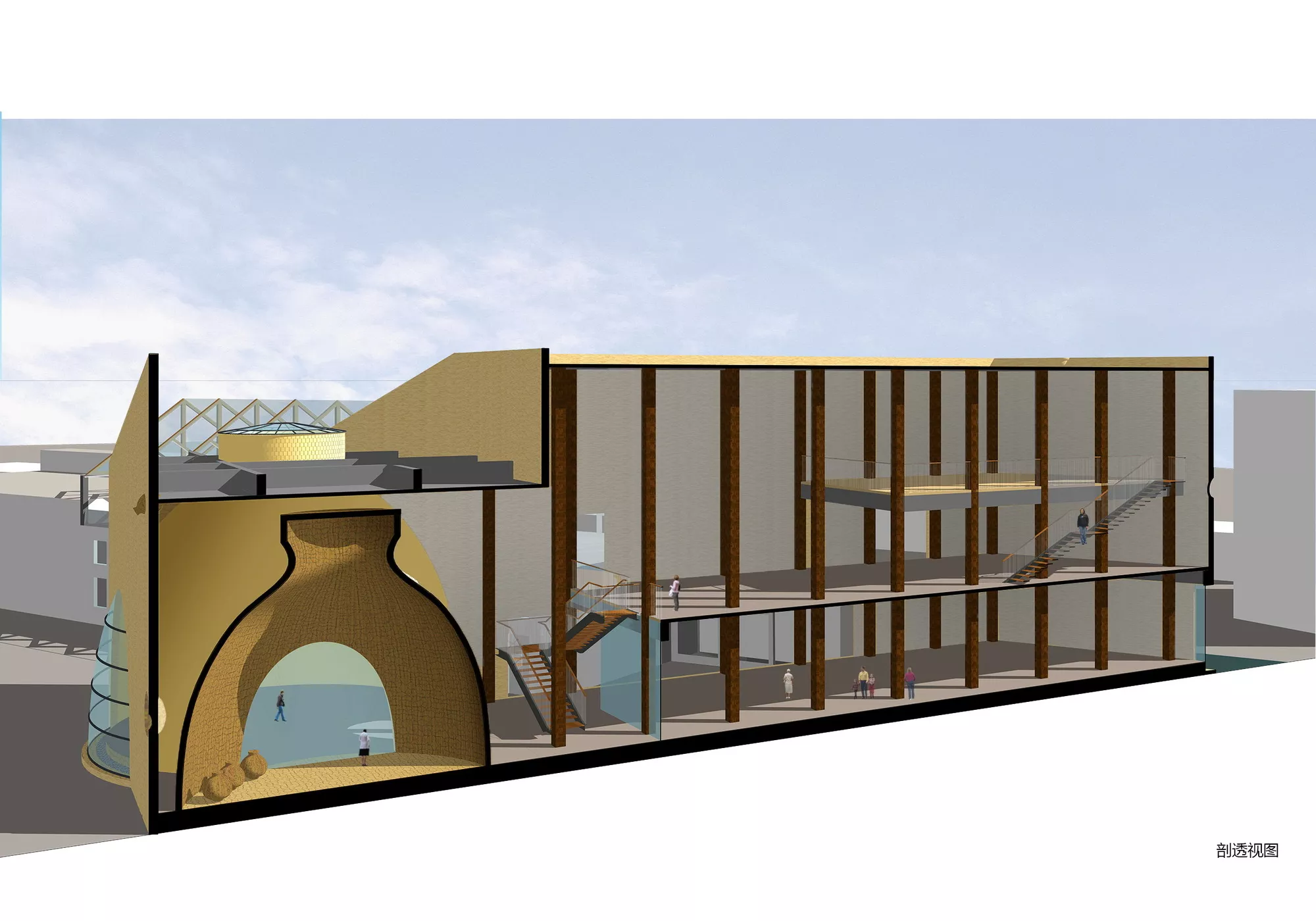 在建筑的室內(nèi)設(shè)計中,也處處體現(xiàn)出器皿的設(shè)計構(gòu)思,入口處凹進去的“壇子”的形狀形成了天然的雨棚,也形成了立面上的“視覺焦點”,隨之的半球形的大廳則將人帶入了奇妙的空間體驗中。