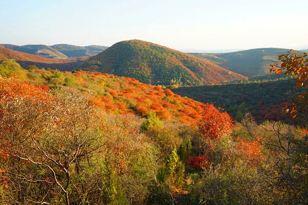 虎頭山風(fēng)景區(qū)的紅葉猶如紅色的地毯鋪滿山坡