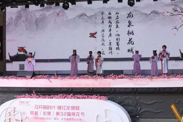 今天,洛帶古鎮(zhèn)五鳳樓廣場萬年臺,桃源讀書會,中外萌娃群誦《桃花賦》,吟桃花、誦龍泉、歌盛世,稚子悠悠吟誦,覽智造龍泉,賞最美桃源
