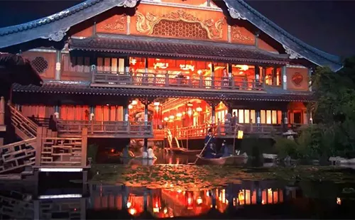 昔日煙柳繁華地,今日曲-月樓。胡月樓為唐代文人雅士風月之所,展現(xiàn)唐代風月文化生活,配以繡船、將進酒等互動情節(jié),是領略詩情畫意的佳麗之地。