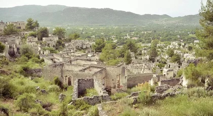從石棺群再向南行,蜿蜒山谷中,還有一片消失的古村落,當?shù)厝朔Q為“鬼城”,荒涼破敗的景象略顯陰森,這便是卡亞克石頭村(KayaKoy Stone Village)。上世紀初,卡亞克曾是希臘人的一個重要聚居地,整體遷走后,村子就廢棄了,如今只剩漫山遍野的石墻訴說往昔蒼茫。