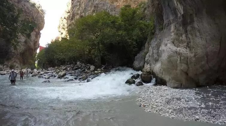 還有更刺激的秘境隱于費特希耶東南,穆拉?。∕ugla)和安塔利亞省(Antalya)交界的達爾加茲河(Dargaz ?ay?)畔,它的名字就叫隱藏之城(Sakliikent)。其實這里是一條平均高度200米的狹窄山谷,萬仞聳峙,湍流飛瀉,棧道凌空,洞隧幽暗,很適合溯溪探險。谷中的徒步路線全長18公里,能全程走下來的勇士寥寥無幾。