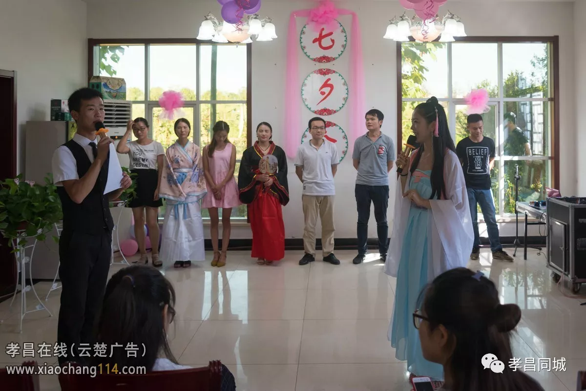 8月28日下午,孝昌縣豐山鎮(zhèn)大唐生態(tài)園格外熱鬧,2017孝昌七夕文藝相親會在這里浪漫上演。百余名單身青年男女身穿古裝在這里開啟了浪漫之約。