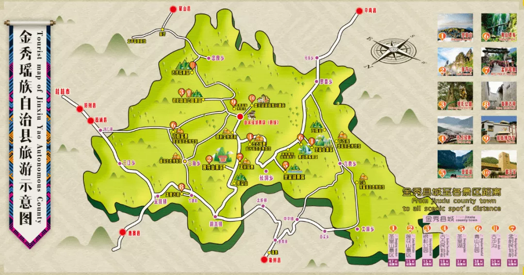 金秀縣旅游點(diǎn)線路里程表