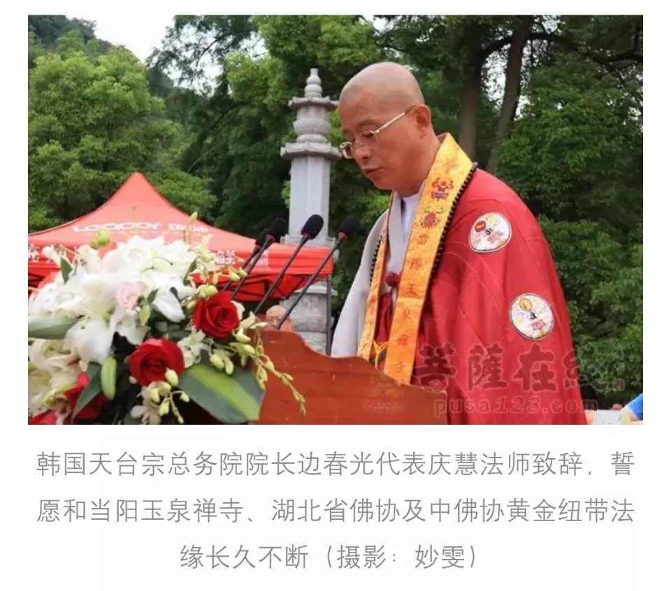 韓國(guó)天臺(tái)宗總務(wù)院院長(zhǎng)邊春光代表慶慧法師;