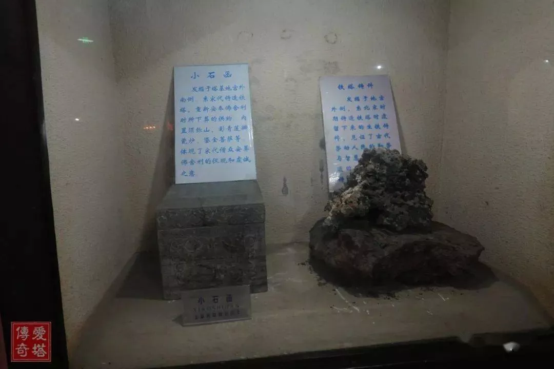 九十年代鐵塔地宮進(jìn)行考古發(fā)掘,出土多層舍利石函,在最外層石函上蓋刻有一篇嘉祐六年(1061年)銘文,銘文記述北宋天圣初年,玉泉寺經(jīng)藏地基下發(fā)現(xiàn)舍利石函,石函上的銘文記錄唐高宗儀鳳二年,為紀(jì)念唐太宗祭辰,各州度僧并造七級(jí)寶塔,玉泉寺弘景禪師后被皇帝招入京城供養(yǎng)數(shù)年,到了武周時(shí)期,禪師決定回歸山野,得到武則天的同意并賜舍利,武周長(zhǎng)壽三年安置舍利于塔下