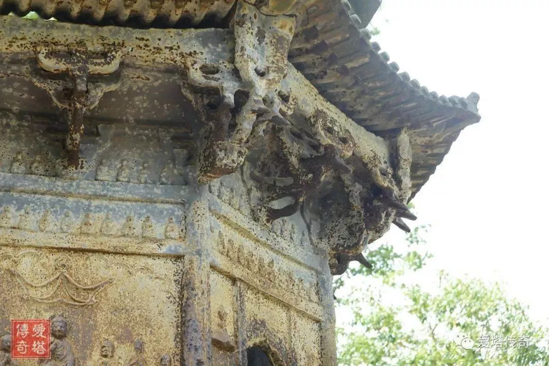 雖然是鐵鑄的,建筑細(xì)節(jié)表現(xiàn)方面一絲不茍,鐵塔的柱形采用的是宋代流行的梭柱