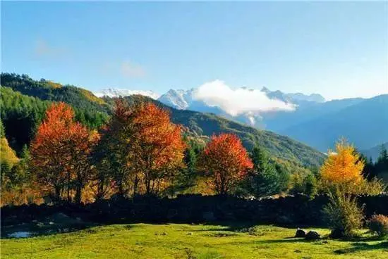 磽磧湖:一年四季風(fēng)景優(yōu)美,10-11月風(fēng)景尤為漂亮,從寶興出發(fā)到磽磧湖沿途風(fēng)光秀麗,山谷兩岸更是五彩繽紛,十分壯觀