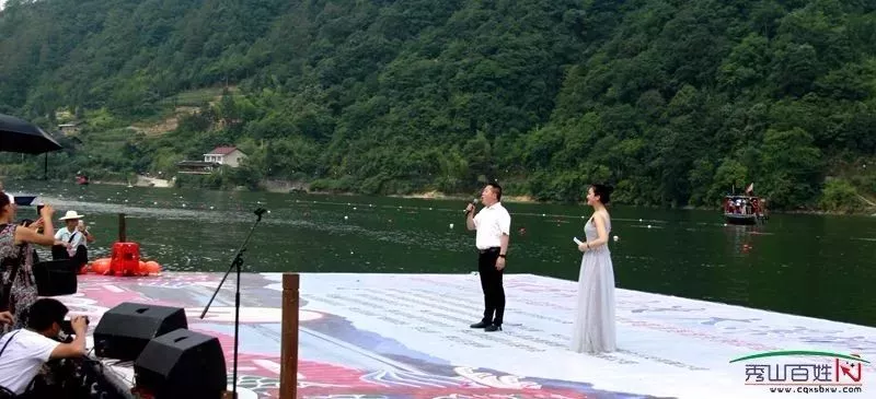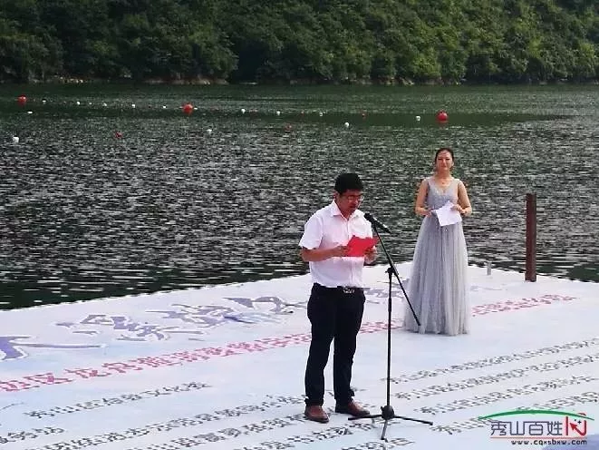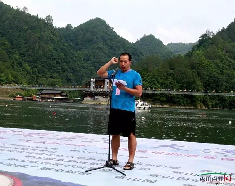 大溪鄉(xiāng)黨委書記池鋒宣布龍舟賽開幕△