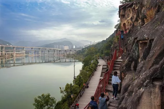 一大早,趁著人少我來到了位于江邊的千佛崖景區(qū)。景區(qū)不大,環(huán)境安靜優(yōu)美,就在江邊。千佛崖還有許多小龕,雕鑿細致,人物形象栩栩如生,如身著胡服的樂工、隨曲飛舞的飛天、脅生雙翅的飛人、身著銷甲的勇士,以及各種飛禽走獸、神話故事等等,內(nèi)容十分豐富,是研究中國古代石窟藝術(shù)的寶庫。直觀上看很多石窟都已經(jīng)風化,也有保存比較好,千佛崖透露出深厚的文化底蘊,要喜歡石窟佛像的話會感覺很值。但需要攀爬上很高的樓梯,腿腳不利索的人要小心。