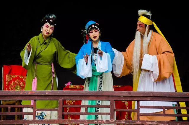 由于是節(jié)假日,景區(qū)門口正在上演川劇,閑著沒事,靜下心來仔細欣賞了一會。川劇音樂博采眾長,兼收并蓄,她囊括吸收了全國戲曲各大聲腔體系的營養(yǎng),與四川的地方語言、聲韻、音樂融匯結(jié)合,衍變形成為形式多樣、曲牌豐富、結(jié)構(gòu)嚴謹、風格迥異的地方戲曲音樂。