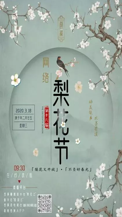 第十六屆蒼溪(網(wǎng)絡(luò))梨花節(jié)(3月18日—22日)以“梨花又開(kāi)放”為主題,創(chuàng)新活動(dòng)形式,采用網(wǎng)絡(luò)形式舉辦。