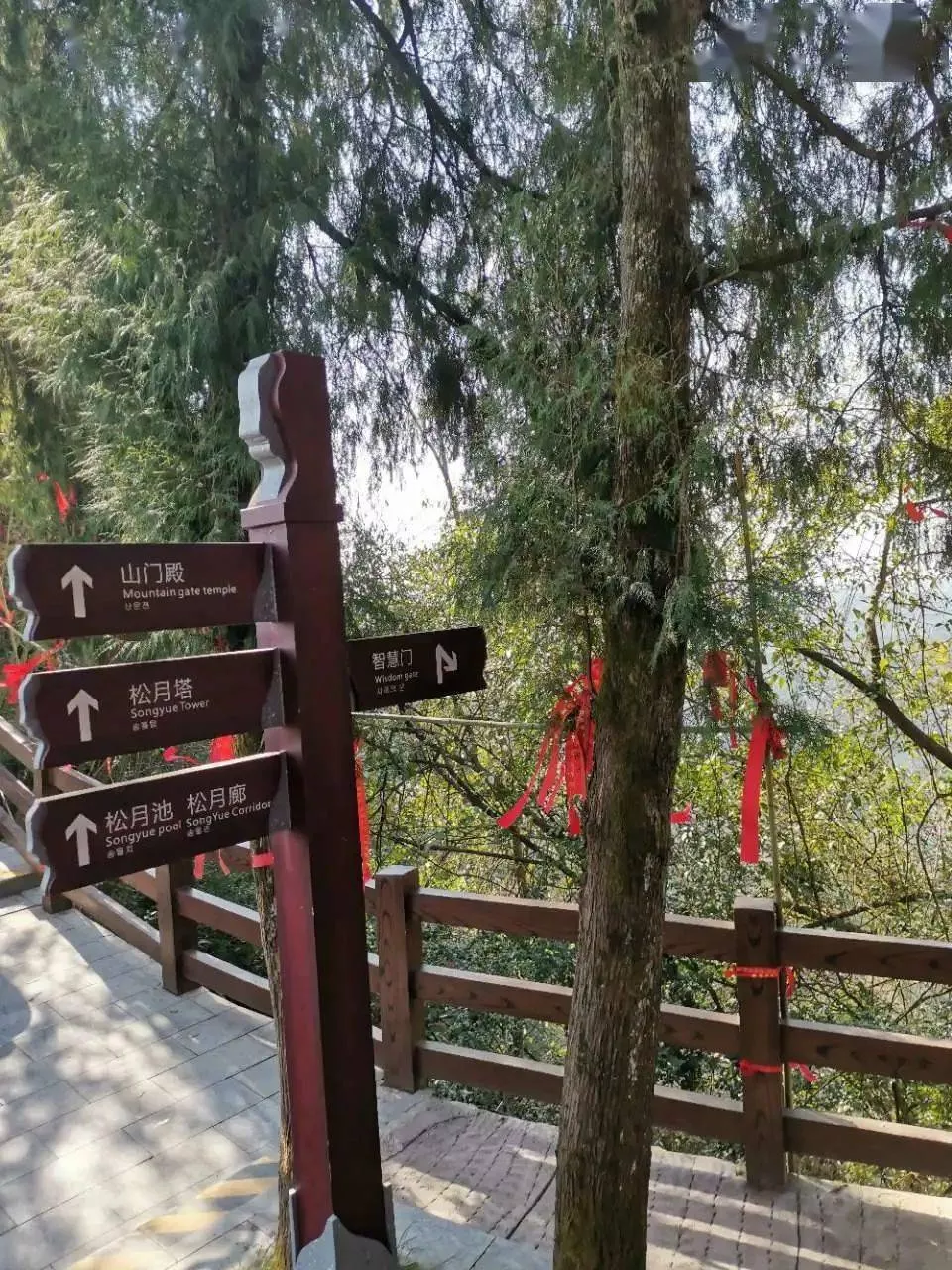 我們在進(jìn)山的地方花5元錢買了門票,就一路小跑開始爬山。上了一段臺階,是一個牌坊,與進(jìn)山路上的牌坊規(guī)制一樣,只是小了許多。
