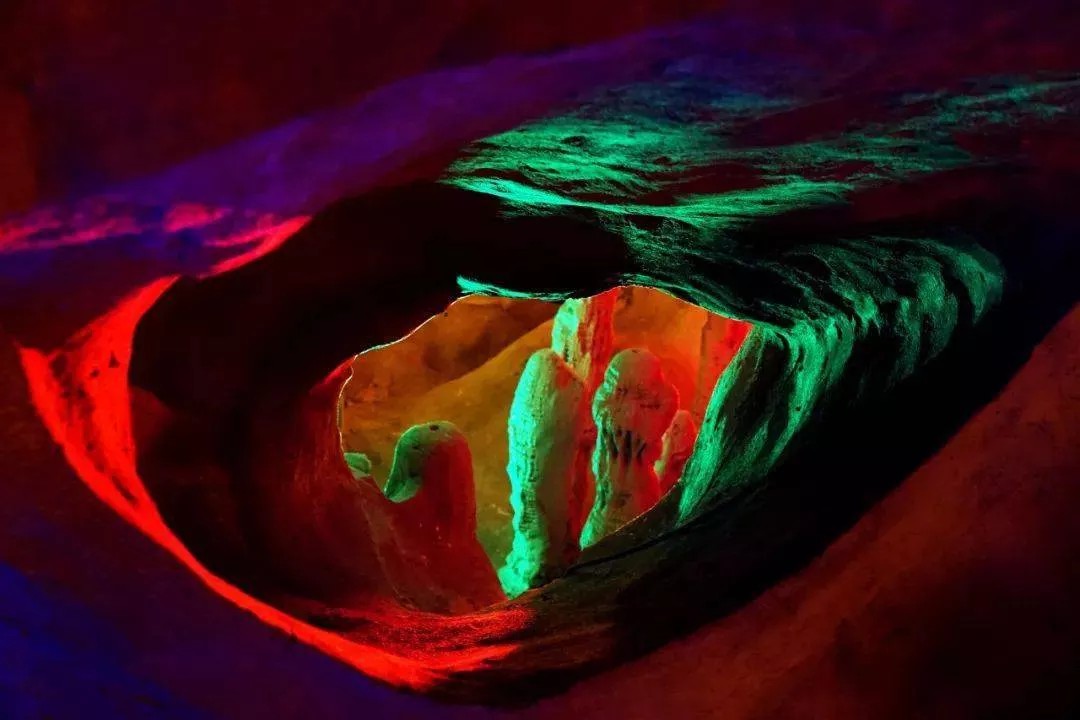 從九仙洞天洞口進(jìn)入,就步入了溶洞里的夢(mèng)幻深淵景點(diǎn),夢(mèng)幻深淵是全世界唯一在深不見(jiàn)底的地下縫裂上用光影和高科技手法建造的一段300米長(zhǎng)的如夢(mèng)似幻的人間奇跡。行走其上如瀕臨萬(wàn)丈深淵,又如跌進(jìn)地底世界,極具刺激性和挑戰(zhàn)性。至于時(shí)空隧道,雖只有短短的百米長(zhǎng)度,卻足以讓每一個(gè)經(jīng)歷者如夢(mèng)似幻。進(jìn)入古語(yǔ)所道“洞中方一日,世上已千年”的奇幻境界。讓每一個(gè)經(jīng)歷者在特定時(shí)空中感受時(shí)光倒流。