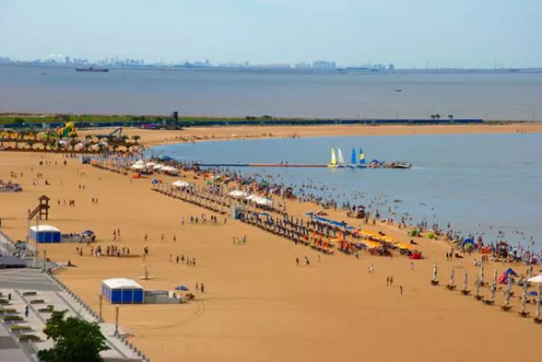 東疆港人工沙灘(東疆灣金沙灘)——天津濱海新區(qū)首個(gè)人工海灘已經(jīng)建成。藍(lán)色的海水,金色的沙灘,或坐在松軟沙灘上吹海風(fēng),或光著腳丫在鵝卵石帶上散步,撿貝殼、吃燒烤、玩沙灘排球……您用不著走出天津,就能享受"碧海金沙"帶來的樂趣。東疆港人工沙灘美圖東疆港人工沙灘所處的位置是天津海岸線最靠近外海,也是水質(zhì)最好的地方。東疆港人工沙灘的"金沙"平均厚度達(dá)1.2米,從岸邊呈緩坡狀一直延伸至海邊。人工沙灘所用的"金沙"全部從福建運(yùn)來,用量近20萬噸。沙灘的緩坡設(shè)計(jì)充分考慮到潮水漲落時(shí)的水流情況,可防止海水退潮時(shí)將"金沙"帶走。為保證游人安全,在公共游樂區(qū)沙灘的近海端鋪設(shè)了一條寬約58米的鵝卵石帶,所用鵝卵石將從秦皇島運(yùn)來。此外,天津港還在附近海域修建防波堤,以保持海灘的潔凈,防止海上漂浮物進(jìn)入人工海灘。