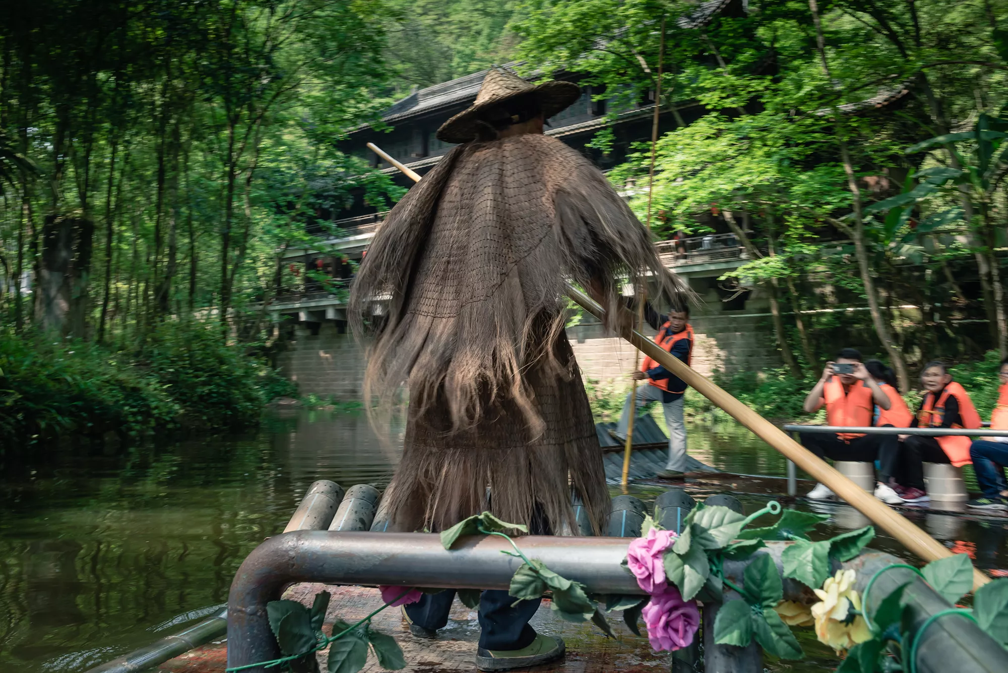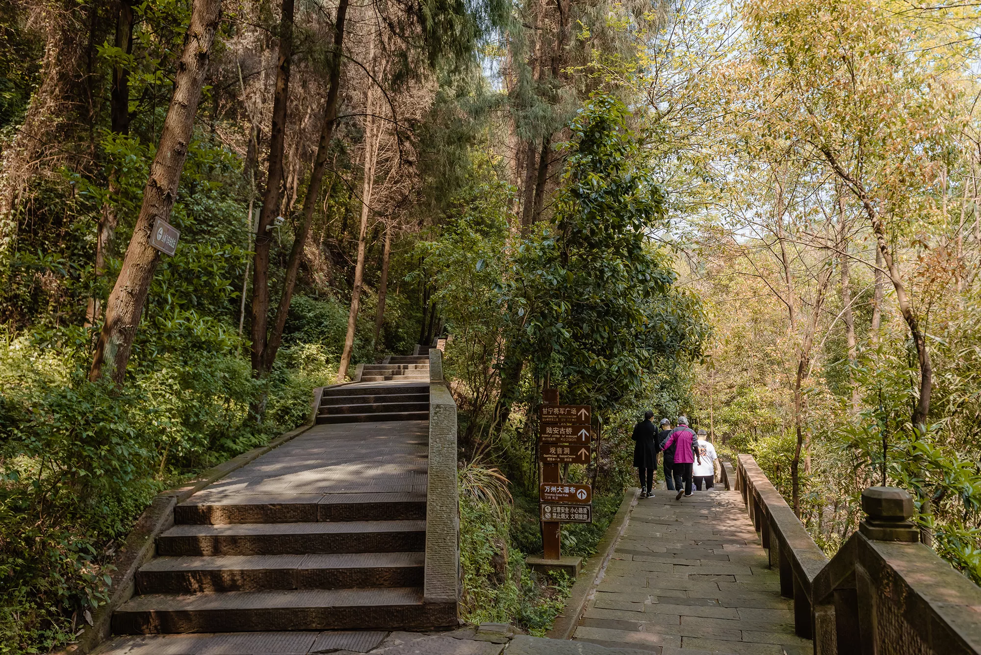 坐車大概三分鐘便從山上沖到山下面,接著往前走幾步便能到達陸安橋。陸安橋是一座很有意思的拱橋,橋身坡度很大。爬上橋頂便能看到萬州大瀑布,在上橋的瞬間,大瀑布便從我的眼前浮現(xiàn)出來,何其壯觀。下橋以后可前去乘坐漁夫劃船,船會劃到大瀑布下面,聽說夏天的時候必須要穿雨衣才能保證身體不被淋濕。