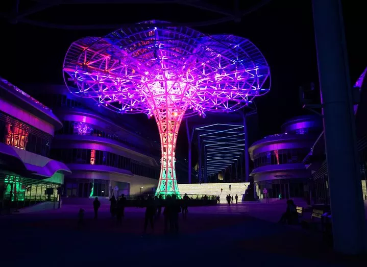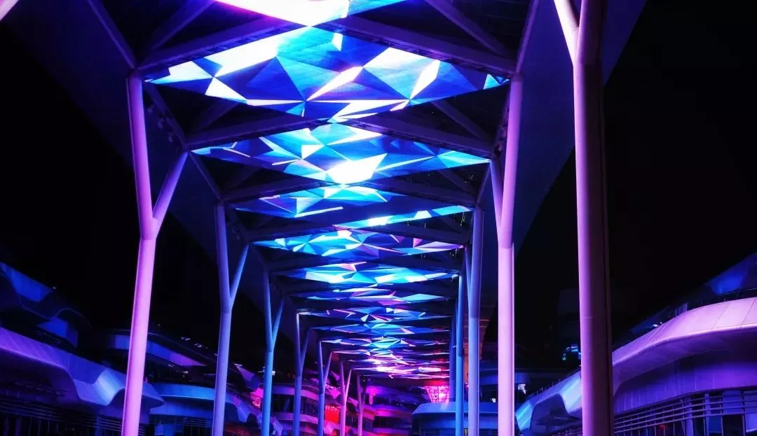雖然是完完全全的人造小鎮(zhèn),但現(xiàn)代感和科技感十足的渲染下,反倒顯得這個(gè)山里小鎮(zhèn)很是前衛(wèi)。夜晚燈火輝煌,光彩奪目,沒(méi)有了白天里明晃晃的日光,五彩斑斕的霓虹燈讓天文小鎮(zhèn)有著另類(lèi)的風(fēng)情。