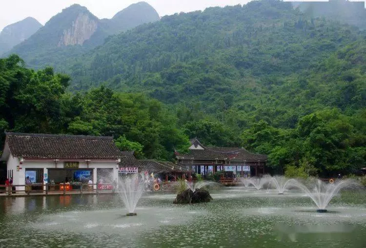 離開“美女榕”,過一個(gè)類似一線天石門,到天星湖,天星湖有上下兩個(gè),水面如鏡,水上有噴泉,這里也是舊版西游記高老莊的拍攝地。