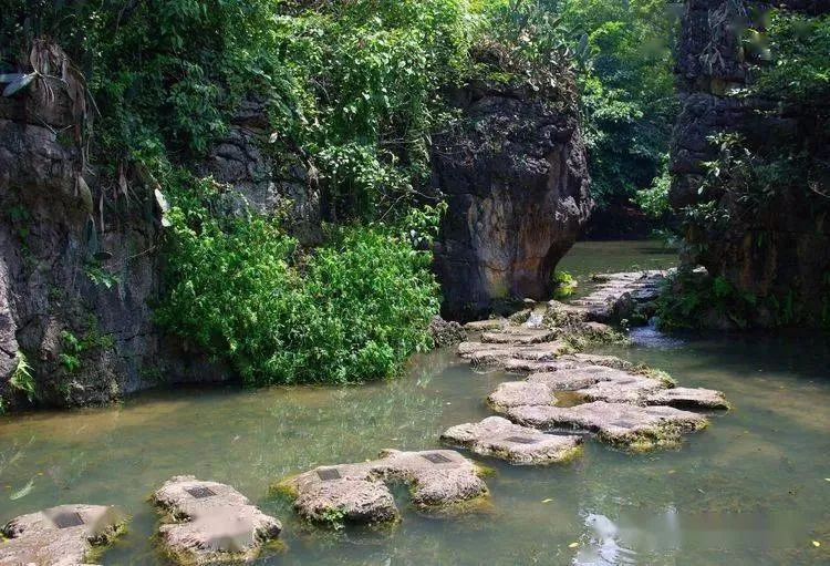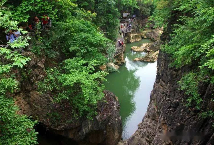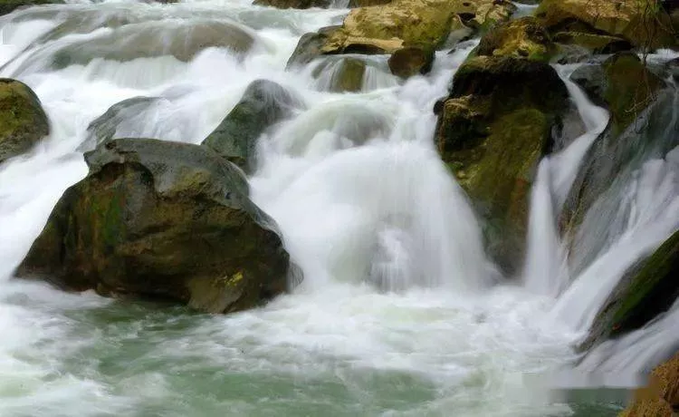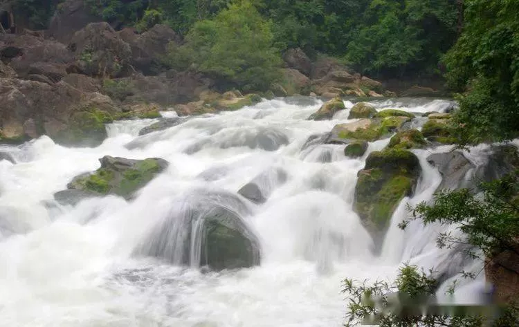 繼續(xù)下行,過吊橋,入天星洞,天星洞是一個(gè)典型的喀斯特地貌溶洞,洞徑曲折,洞中有石廳、石柱、石筍,還有各種奇形怪狀的巖石,色彩斑斕,琳瑯滿目。出洞續(xù)行,路多曲折,過橋上橋,順溪行,忽然聽見水聲了,及見溪,急流涌雪,亂石羅列,水石相撞,橋上橋下有一涌泉,水流噴涌翻騰不絕,水量浩大,即冒水潭。