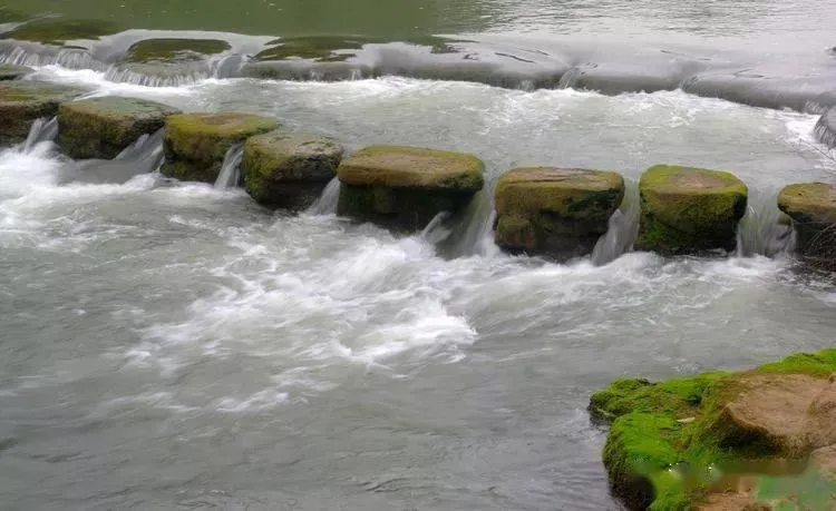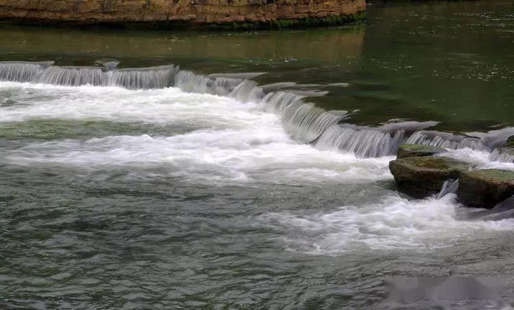 陡坡塘瀑布的另一特色是在瀑下發(fā)育很寬闊平坦的灘面。灘面上遍布數(shù)十個(gè)大小不同的小碧潭,碧潭淺者只有數(shù)十厘米,深者可達(dá)數(shù)米。碧潭中還藏有魚蝦,故當(dāng)?shù)夭家雷迦顺J謭?zhí)網(wǎng)兜,去捕撈潭中的小魚蝦。