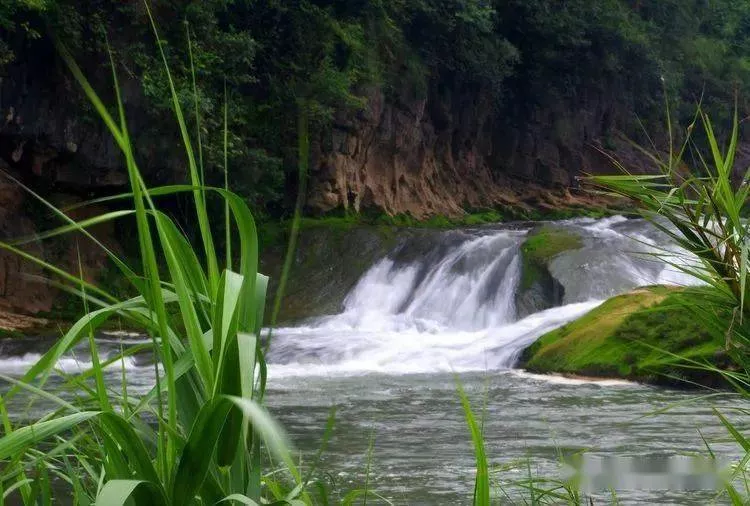 下午2點(diǎn),到陡坡塘瀑布,太陽猛烈,正是一天中最炎熱的時(shí)候,好在溪灘岸蔭翳樹林和溪中的急灘瀑流,給人撐陰送涼,行路中倒也不覺得炎熱。白花花的瀑布寬寬地一幅接一幅,從林蔭空隙露,林密處只見一角,林空處能見一整幅,瀑布無拘無束地瀉奔,只見寬,不見高,一灘一瀑,一潭一井,水急為急流,為瀑布,瀑流生花,水流隨溪灘石床石巖不同的形態(tài),或高低參差,或呈環(huán)形、弧形,飛瀉出不同形態(tài)的瀑流,水靜則為潭為井,或?yàn)?a href='/jingdian/103253' target=_blank>溪流,只是那樣柔柔的綠綠的一色,嫩嫩的,靜靜的,有如碧玉。溪邊溪中的水草,這兒一叢,那兒一叢,或是一大片,隨水流溪風(fēng)搖曳。