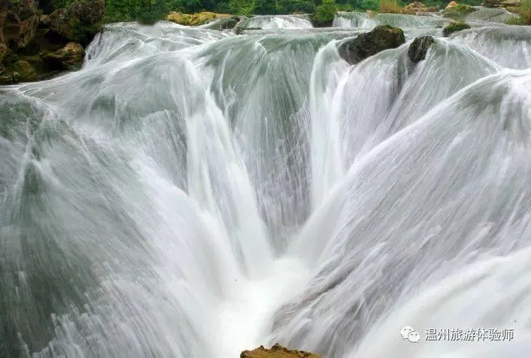 最妙的是銀墜潭瀑布,形如漏斗,瀑面如蓮葉,那一扇扇瀑面恰如一張張往下傾覆蓮葉,扇扇飛流,交錯(cuò)搭連,河水在每一張葉面上幾乎均勻分配鋪開,飛珠濺玉,恣意飛灑。雪白的溪水,從蓮葉上飛出千條萬條銀白色的銀鏈,墜入潭底,翻騰著,歡笑著,歌唱著。銀墜潭瀑布雖然聲勢不如黃果樹大瀑布浩大,也不像陡坡塘以寬取勝,但它是黃果樹眾瀑布中最為秀美的瀑布,它的造型巧奪天工,令人嘆為觀止。