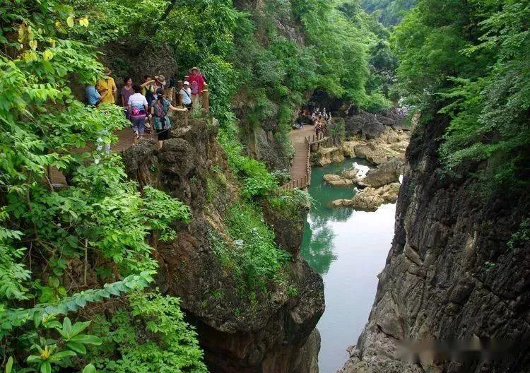 溪中有一石橋,曲折于急瀑,視線所及,盡覽一溪之瀑布、急灘,過橋沿溪行,林蔭遮水,沿路瀑灘時(shí)隱時(shí)見。過得真亭、霞客亭,再過一橋,到乘車點(diǎn)返回,結(jié)束一天的旅程。