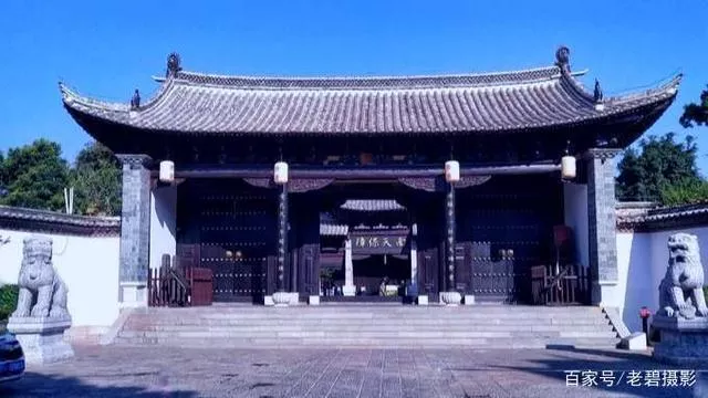 文廟最吸引人的去處無疑是先師殿,它是文廟的主體建筑。先師殿建于明弘治年間,一字排開的五開間三進深單檐歇山頂五架抬梁式殿堂,四面環(huán)廊,七彩重昂斗拱,出檐深遠,飛檐陡脊,拼圖黃色琉璃瓦,彩繪金龍和璽, 28棵柱支撐全殿,前檐12棵為石拄,每棵高5米,重達5000公斤,用整塊大青石雕成。大門左右2棵檐柱雕巨龍盤繞,稱為"石龍抱柱"。正面22扇格子門所雕飛禽走獸,形態(tài)各異.玻璃瓦的屋頂,光彩奪目。廟宇周圍古柏森森,顯得莊嚴肅穆,雄偉壯觀,有"金碧壯麗甲全滇"之美譽