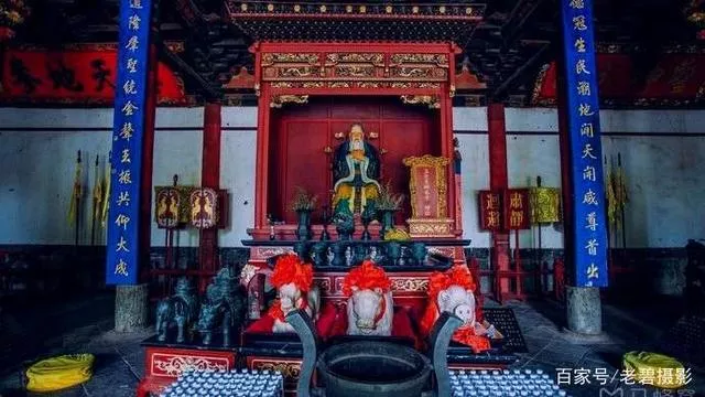 大成殿位于文廟建筑縱向中軸線后部的最高臺了上,以突出其在整個建筑中的核心地位。它是文廟的中心,是祭祀孔子的正殿。正堂內(nèi)置龍寶座,供奉著孔子塑像。