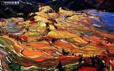 元陽哈尼族開墾的梯田隨山勢地形變化,因地制宜,坡緩地大則開墾大田,坡陡地小則開墾小田,甚至溝邊坎下石隙也開田,因而梯田大者有數(shù)畝,小者僅有簸箕大,往往一坡就有成千上萬畝。