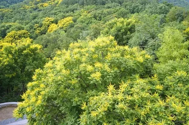 一串串金黃色的花朵在山林中匯聚,
