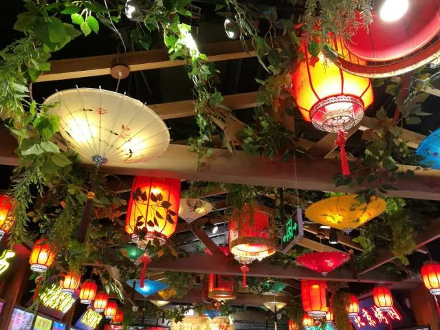 北京前門大街前門小吃城的內(nèi)部由于原本正陽美術(shù)館的建筑比較高,因此前門小吃城頂棚的裝飾還是比較有特色。