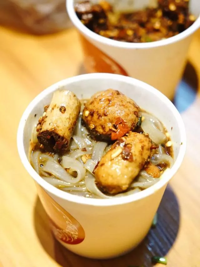 這家店第一次吃到是在花果園,主要特色是鹵苕粉,鹵湯味很重,苕粉是手工做的,所以味道挺不錯,特別喜歡里面有脆哨沫,更加香!也有很多鹵的串串可以單點一碗,但是我喜歡一碗苕粉再來一串牛肉丸,簡直爽翻